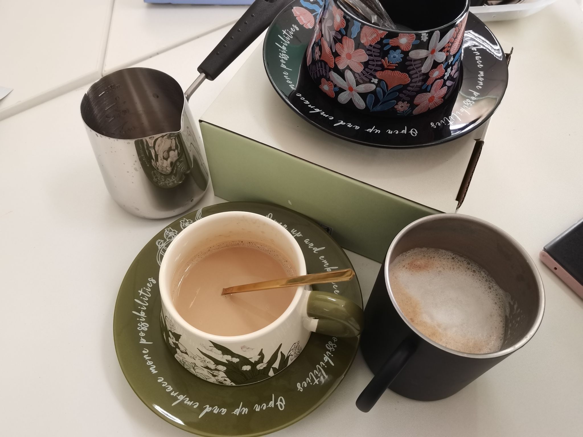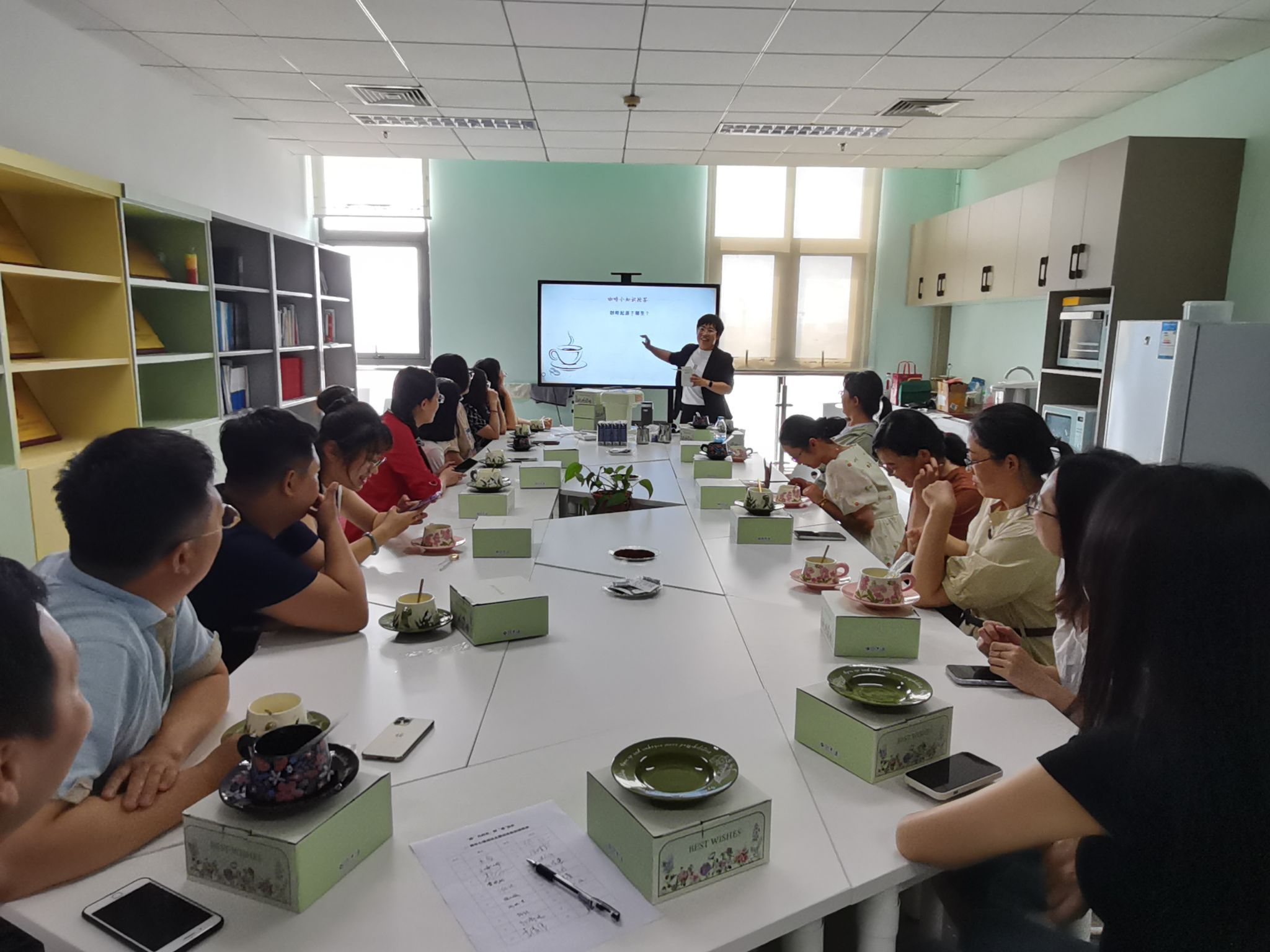 活动别出心裁地分为“‘啡’凡时光” 与 “制‘皂’快乐” 两大环节。在知识科普与实践体验相融合的 “‘啡’凡时光” 环节中,分工会主席陈冬梅化身 “咖啡导师”,讲解了咖啡豆烘焙工艺、萃取原理等专业知识以及意式咖啡、拿铁、冷萃咖啡等多种经典饮品的制作流程。从浓缩咖啡的萃取技巧到奶泡打发的细腻程度把控,教职工们沉浸式学习咖啡文化,亲手调配出专属风味,在氤氲香气中舒缓身心。