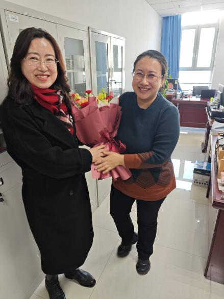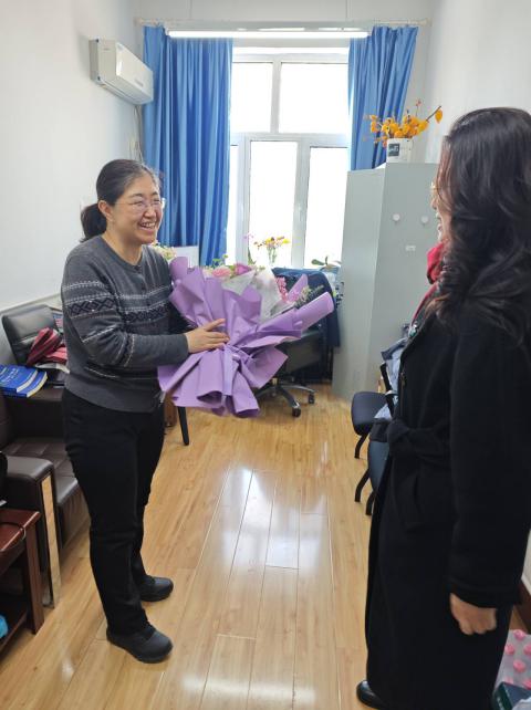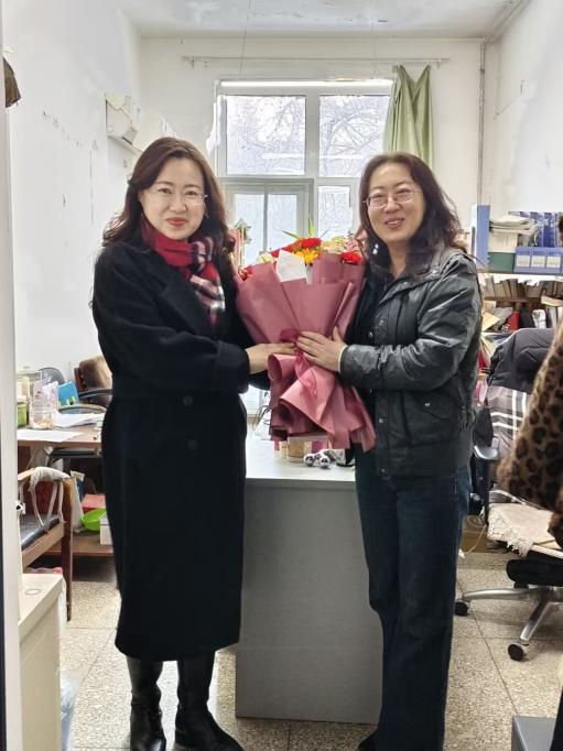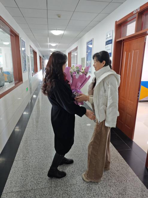 为确保走访慰问精准高效、暖意十足,工会提前部署,组织学生助理逐一电话联系各位女教授、女博导,细致确认她们的工作地点与空闲时间,力求将关怀送到每一位老师身边,不打扰老师们的科研与教学工作。慰问过程中,工会主席刁春香老师亲自带着精心挑选的鲜花,先后走访慰问了多位奋战在科研育人一线的教授、博导,与她们面对面亲切交流,倾听心声、了解需求,送上节日的美好祝愿。